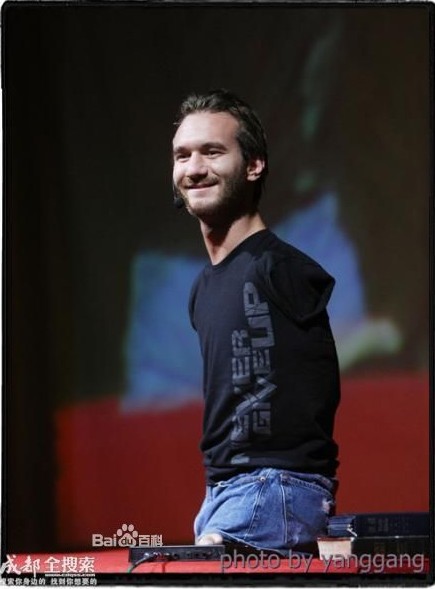 尼克胡哲(英语:Nick Vujicic,1982年12月4日生于澳大利亚墨尔本),塞尔维亚裔澳大利亚籍基督教布道家,“没有四肢的生命”(Life Without Limbs)组织创办人。他天生没有四肢,但勇于面对身体残障,创造了生命的奇迹。