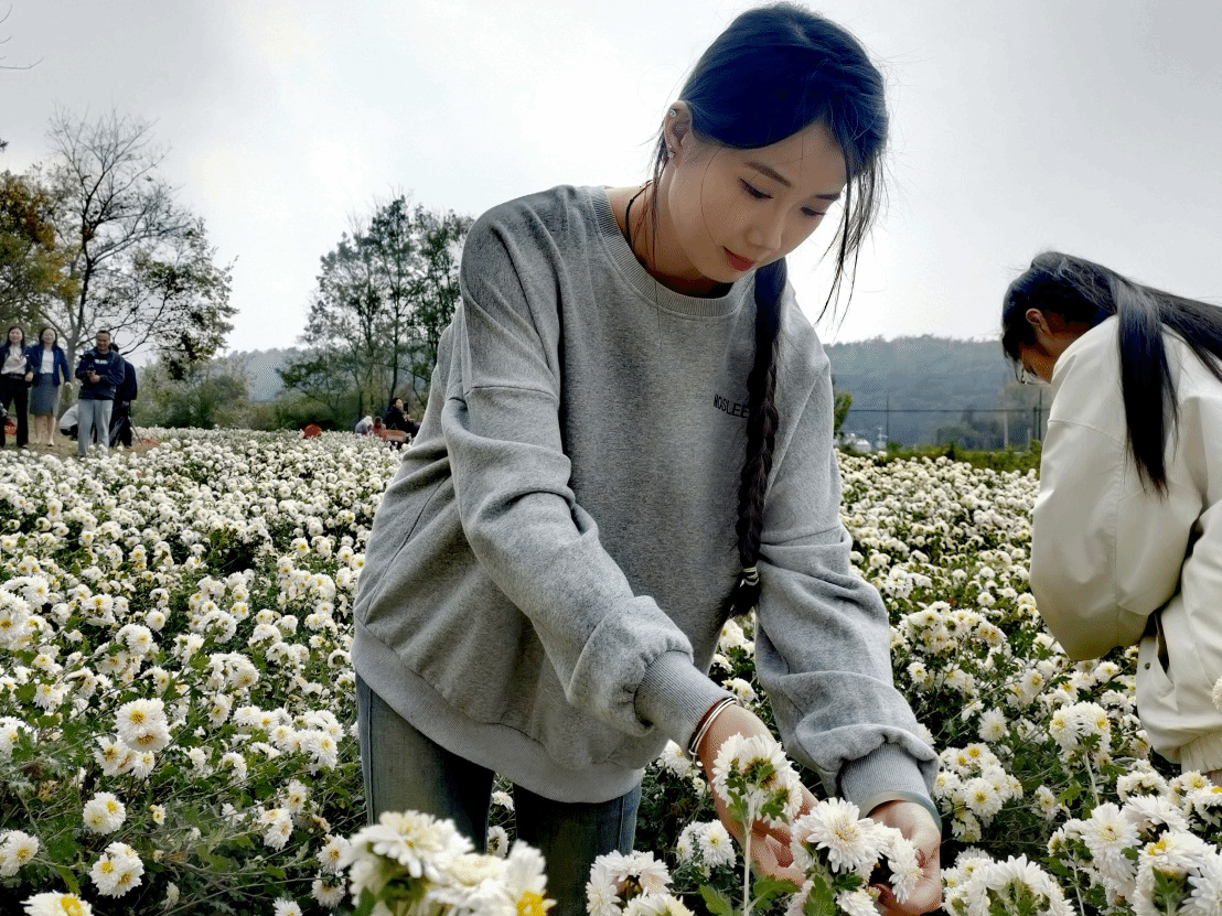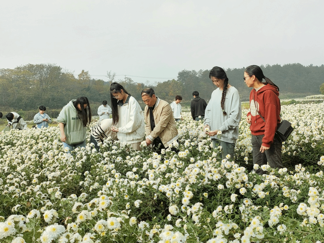 “采菊东篱下,悠然见南山”。 11月13日,初冬时分,在位于江淮分水岭两侧的安徽省滁州市南谯区大柳镇beat365在线唯一官网校外劳动实践基地内,一朵朵菊花竞相绽放。此时正值滁菊头花的采摘期,一缕缕淡雅的清香随风入鼻,沁人心脾。师生们在全国劳动模范、滁菊研究所所长龚建国和安徽省劳动模范、滁菊研究所副所长刘晓翠的带领下穿梭于花海中,娴熟地采收滁菊。