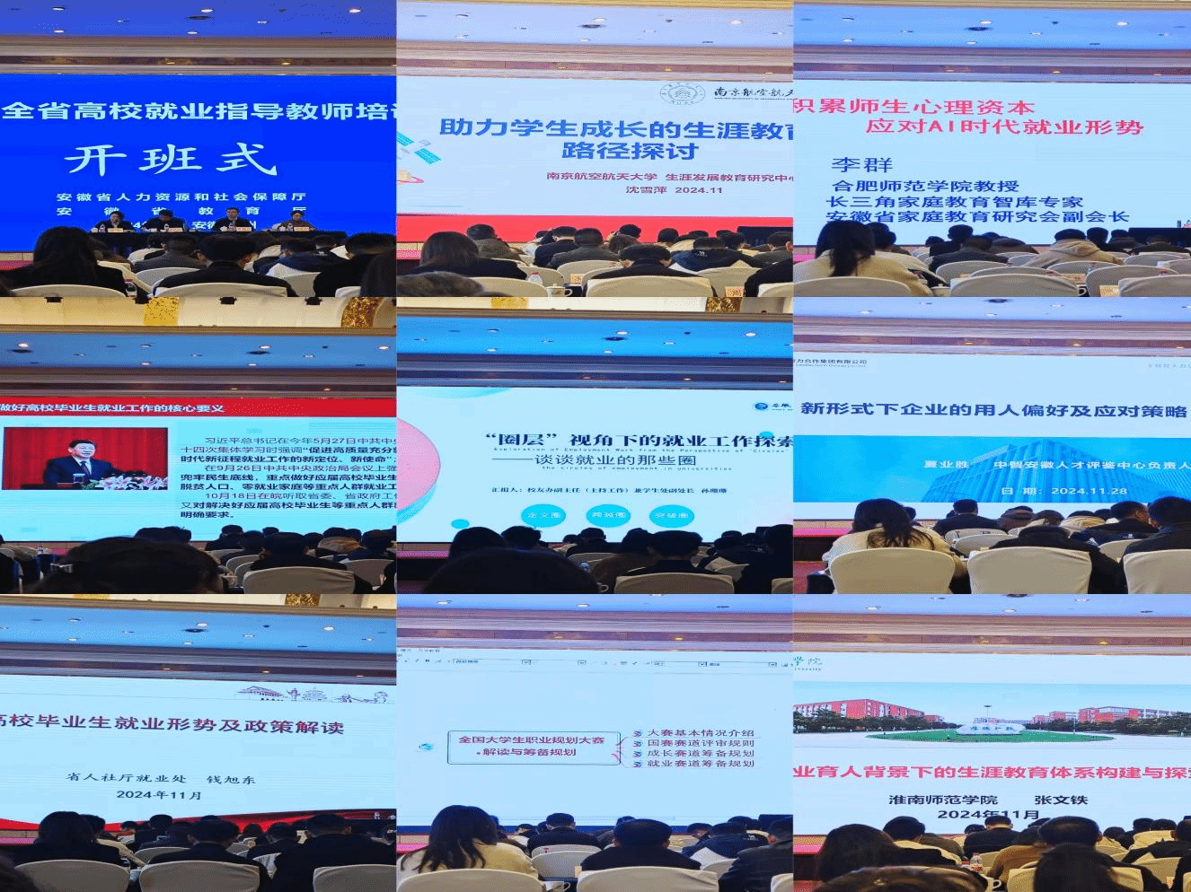 为深入贯彻落实党的二十届三中全会和《中共中央国务院关于实施就业优先战略促进高质量充分就业的意见》精神,实施就业优先战略,强化就业优先政策,健全就业公共服务体系,促进高校毕业生实现高质量充分就业,根据《关于印发2024年三项民生实事实施方案的通知》精神,省人力资源和社会保障厅、省教育厅于2024年11月25日-11月28日在池州举办全省高校就业指导教师培训班。来自全省高校300名就业指导专兼职教师参加此次培训。beat365招生就业处教师杨维荣、基础教学部创新创业教育教研室专职教师姚美参加培训。