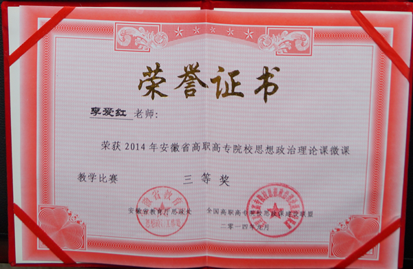 在今年7月至9月开展的安徽省高职院校思政理论课微课比赛中,我院思政部张家莉、李爱红老师分别获得二等奖、三等奖。这是继张家莉、汪立超老师在全国思政征文获奖后的又一喜讯!