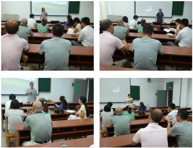 胡颖颖老师和汪立超老师把暑期赴芜湖安徽师大培训的精神向全体老师做了汇报,主要内容有“如何从案例教学入手探索与思考上好思政理论课”“最新版《毛泽东思想和中国特色社会主义理论体系概论》教材修订框架与十八大精神进课堂的思考”“如何从审美角度阐述思政课的内涵”。