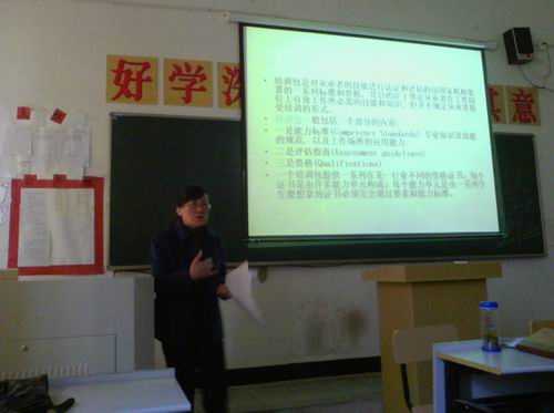 随着国家对职业教育的重视,国际间职业教育的交流不断增多,受学校的推荐,基础部英语教研室周婕老师参加了为期四周(2013年2月24日至3月24日)在澳大利亚的文化名城墨尔本市Preston校区的高等职业技术学院(NMIT )骨干教师培训。4月10日下午,周老师就澳大利亚职业教育的培训系统和模式、专业课程设置、不同的教学方法等,向基础部全体教师做了汇报。主要介绍了澳大利亚职业教育与培训系统(Vocational and Training System) 简称VET,部分课程的教学方法,各个专业课程设置,高等职业技术学院(Training And Further Education),澳大利亚职业教育框架体系与模式等。增长了见识,开阔的眼界,站在了一个更高的平台,对职业教育和培训有了更进一步的理解,对职业教育的发展趋势有了更清晰的认识。