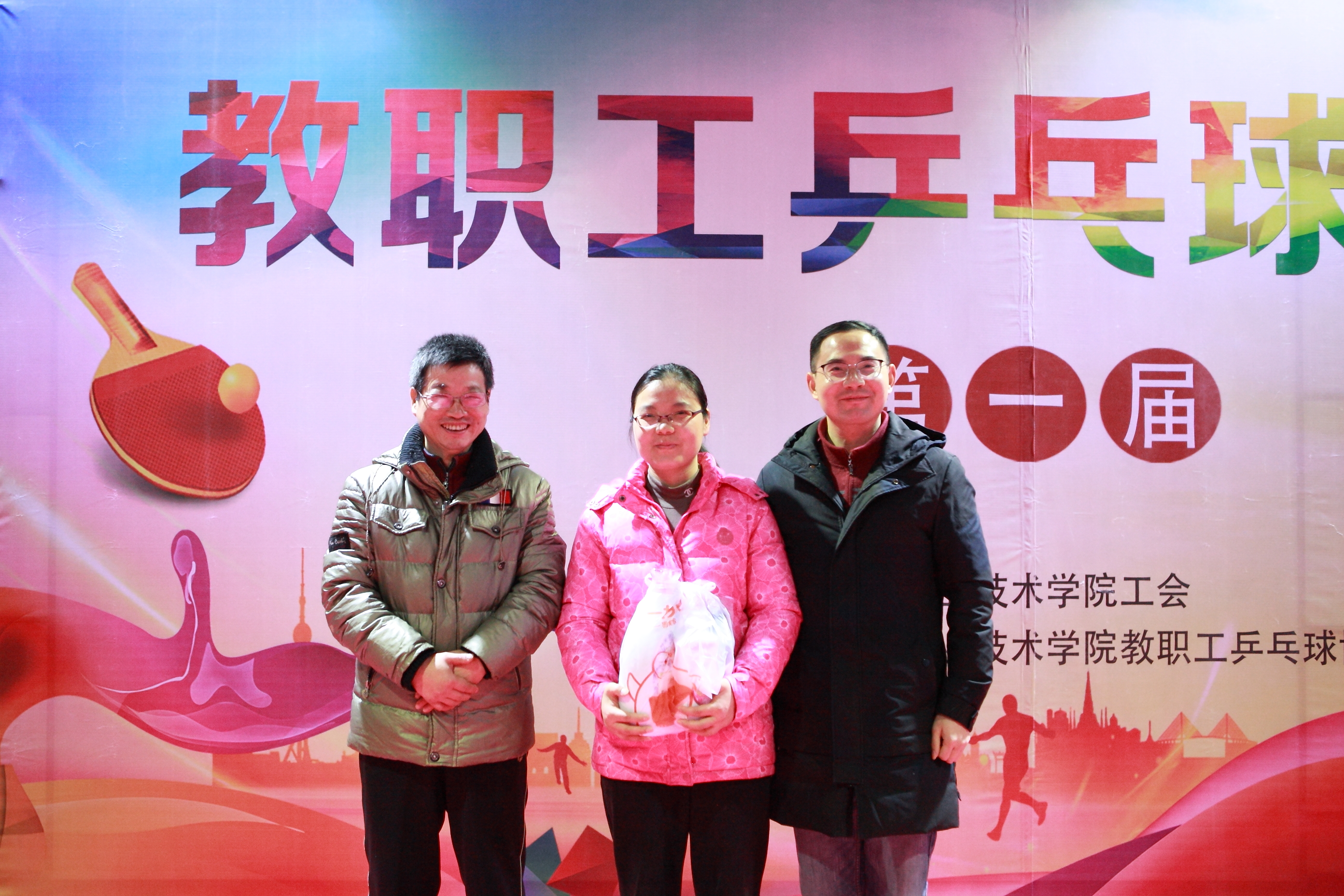 12月27日,由校工会、校乒协举办的第一届教职工乒乓球比赛在校体育馆开赛。基础部代表队发挥出色,取得佳绩,其中强晓华老师勇夺女子单打冠军,杨颖颖老师也不畏强手,取得女子单打第五名的好成绩,由洪山、周大成、强晓华、金本能组成的团队经过艰苦拼搏,实现小组出线并最终获得团体第五名的好成绩。