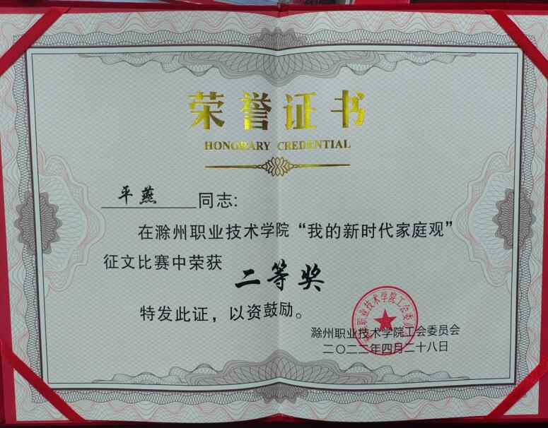 近日,由滁州市妇联和滁州市文明办联合举办“我的新时代家庭观”主题征文活动评选结果公布。beat365基础教学部熊顺喜老师的作品《父亲留给我的传家宝》喜获全市唯一的一等奖。基础教学部平燕老师的《爱在心口难开》荣获校工会组织的“我的新时代家庭观”主题征文二等奖。