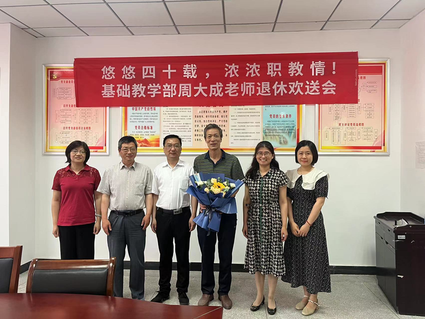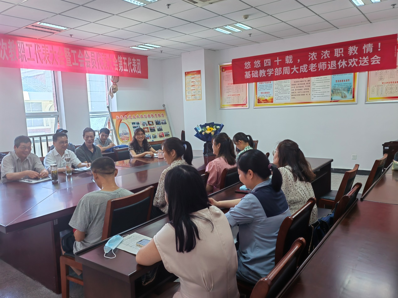 6月16日上午,基础教学部在208会议室为周大成老师举办退休欢送会。基础教学部分工会成员、数理教研室全体教师、各教研室代表参加欢送会。