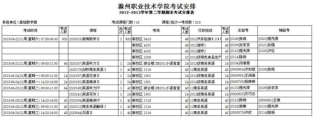 2012-2013学年第二学期公共基础课期末考试安排表.xls