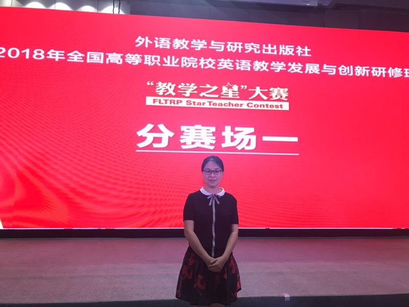 外研社“教学之星”大赛(高职组)2018年的主题为“基于任务的设计:目标、过程与评价”,希望教师通过智慧的教案设计,灵活的课堂展示以及科学的教学效果检验,培养学生运用英语进行真实有效的交际的能力,同时展示与提升教师设计教学任务与引导学生完成该任务的教学能力。孙京京老师在此次比赛中获一等奖。周婕老师被邀请担任此次比赛评委并主持第一分赛场比赛。
