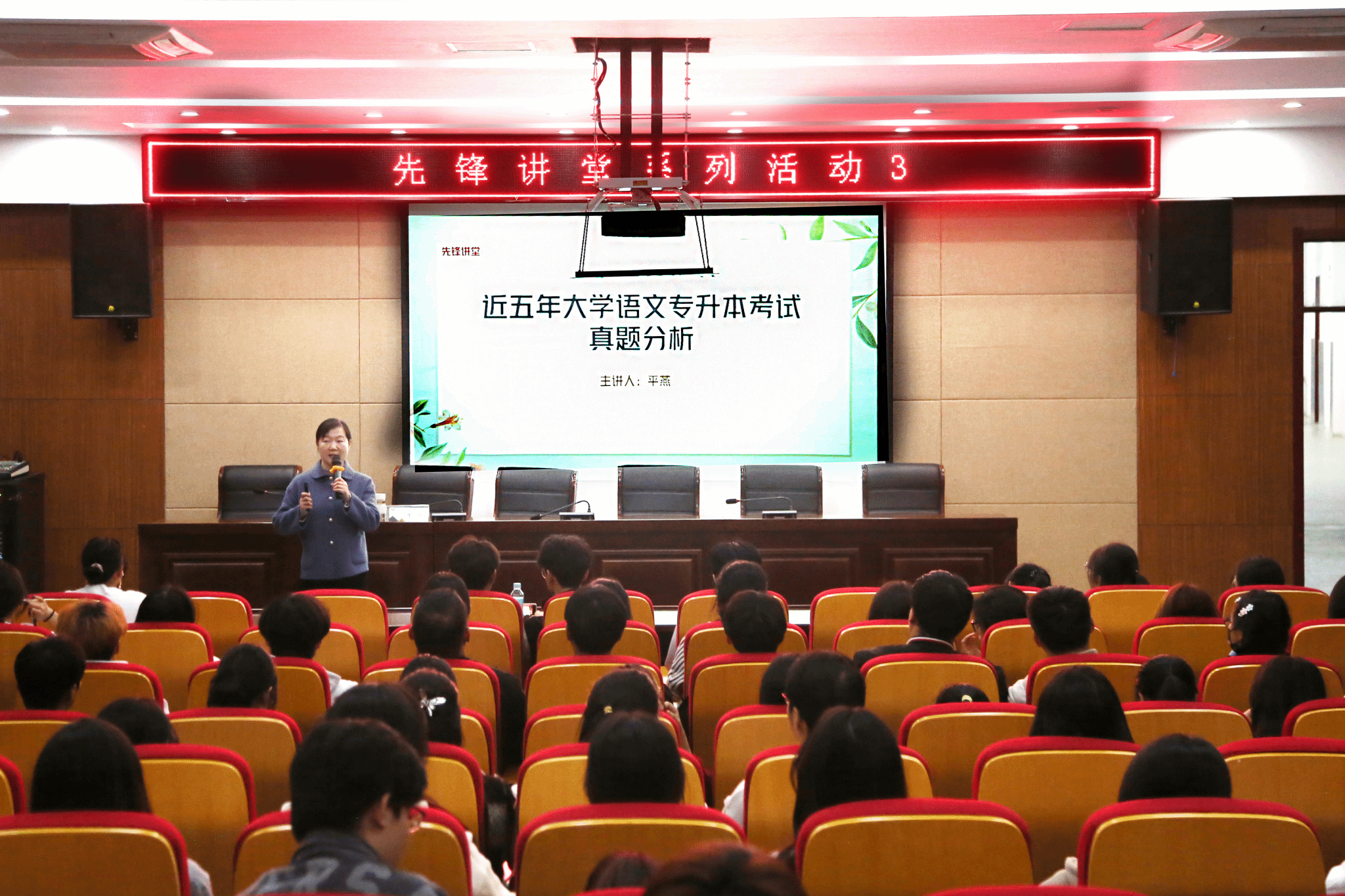 为切实贯彻落实党的二十届三中全会关于教育改革的精神,深化职普融通,助力学生升学发展,2024年11月11日晚七点,由基础教学部党总支主办的“先锋讲堂”系列活动之三——大学语文专升本考试真题分析讲座在南阶205教室热烈举行。此次活动在校园内引起了广泛关注,吸引了超过140名来自全校不同院部的学生热情参与。基础教学部党总支书记薛天飞出席活动并发表了鼓舞人心的开场致辞。讲座由人文素养教研室党员教师平燕主讲。