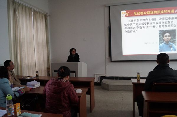 李爱红同志主讲的题目是《群众路线的形成及其理论内涵》,分为四部分:一、党的群众路线的形成和内涵;二、教育实践活动的背景;三、教育实践活动的指导思想和目标任务;四、教育实践活动的总体要求。