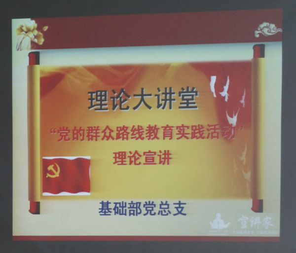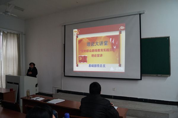 李爱红同志的讲座既有一定理论深度,又紧密联系实际,基础部全体党员聚精会神、认真听讲,深受教育。“理论大讲堂”本年度计划举办九场,是基础部开展党的群众路线教育实践活动的重要内容。