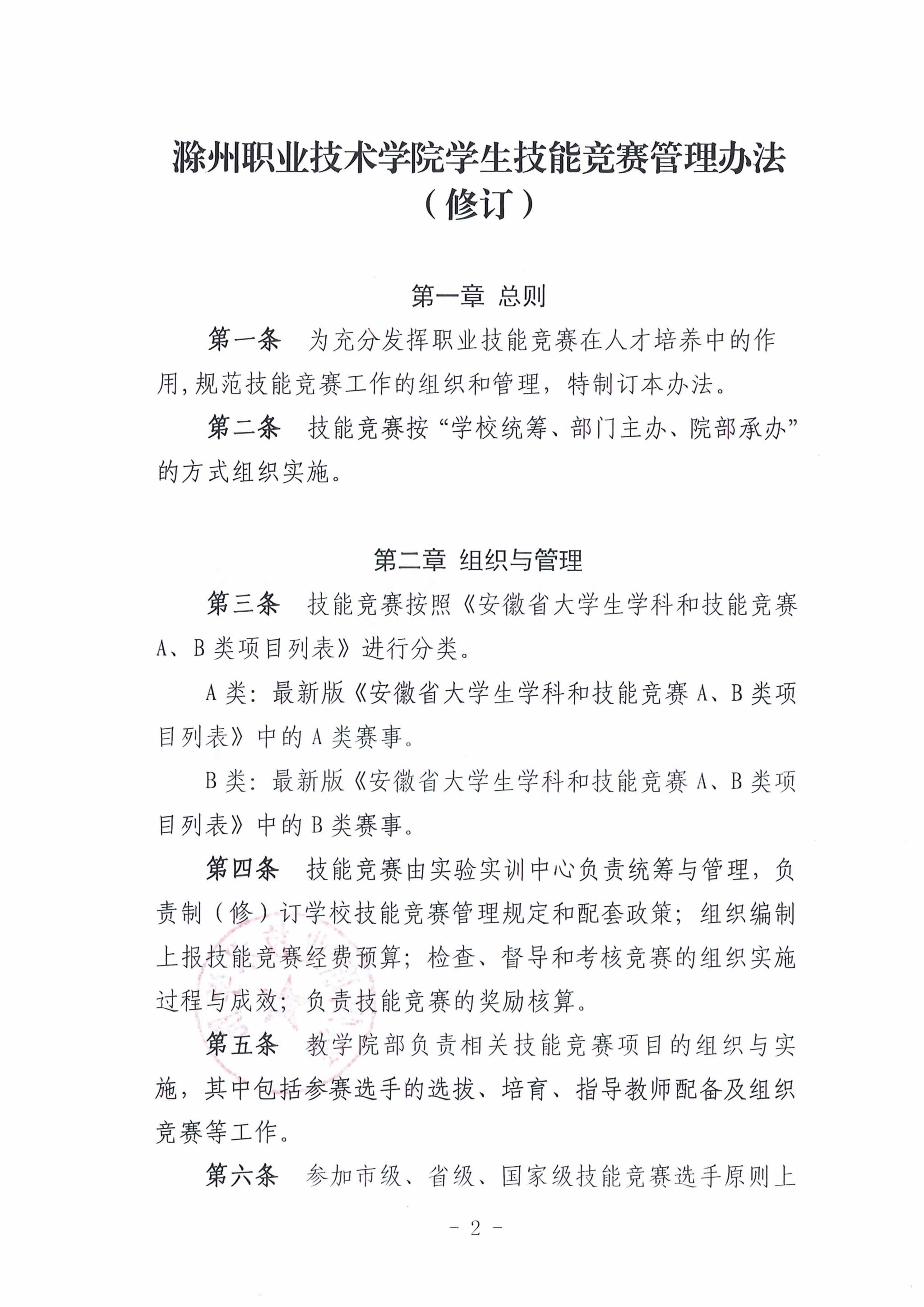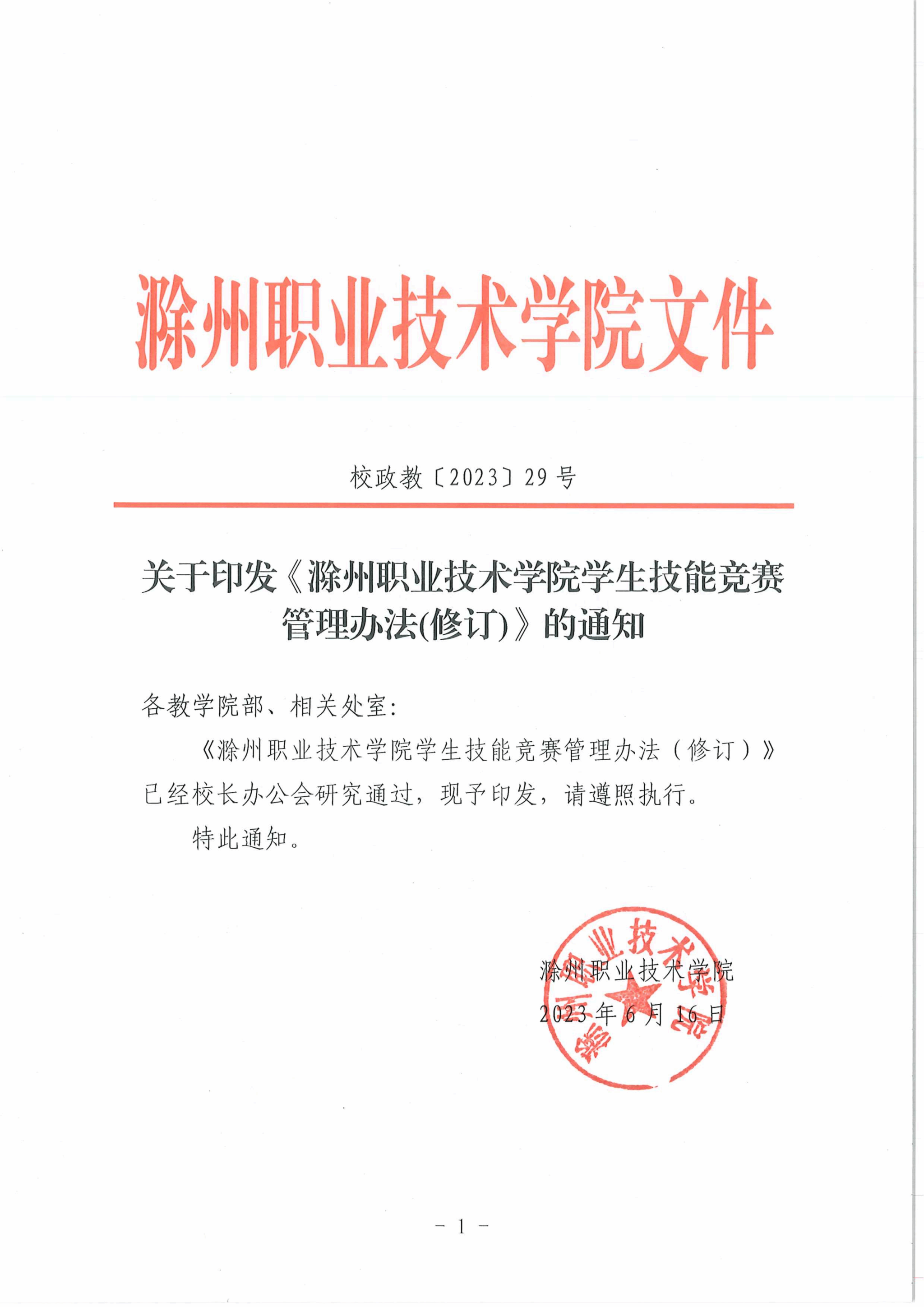 关于印发《beat365在线唯一官网学生技能竞赛 管理办法(修订)》的通知