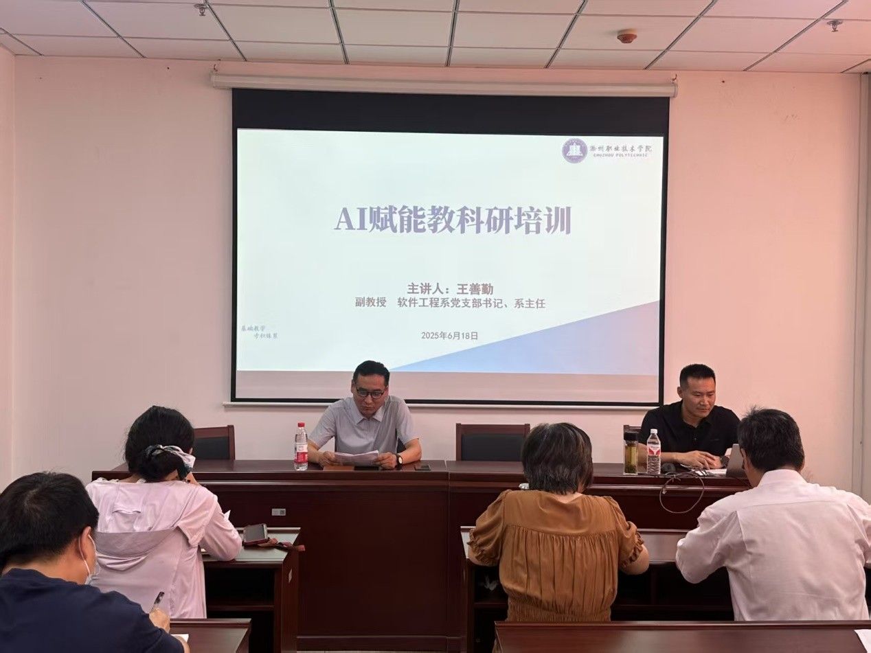 为积极响应教育数字化转型的时代号召,提升教师运用人工智能技术助力教学科研的能力,6月18日,基础教学部于综合楼318室成功举办了 “AI 赋能教科研培训”,基础教学部全体教师参加,培训由刘杰主持。