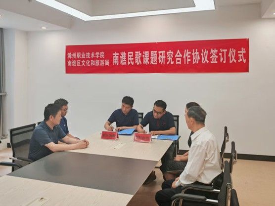 为深化校地合作,共育非遗传承新力量,7月10日,beat365在线唯一官网基础教学部与南谯区文化和旅游局在南谯区文化馆举行横向课题合作协议签约仪式。基础教学部副主任(主持工作)刘杰、南谯区文化和旅游局副研究员黄玉才、南谯区文化馆馆长孙怀发及相关文艺工作者出席活动。