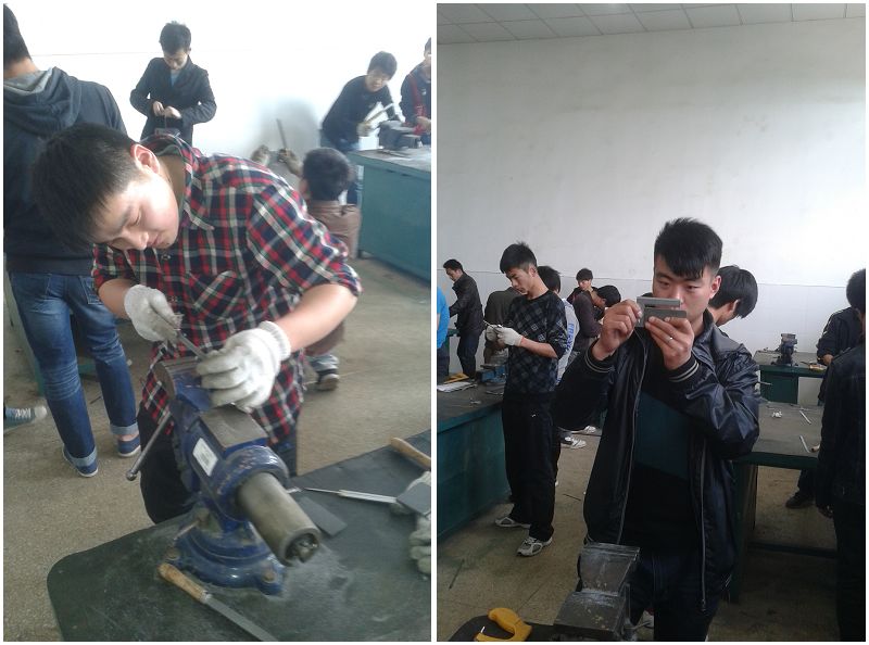 “吃得苦中苦,方为人上人”在实训过程中同学们发挥不怕脏不怕累的精神认真按时完成左老师布置的每一个任务,踏踏实实做工件,为将来走向工作岗位打基础。短短的几周实训过去了,同学们收获很多,对“钳工“这一新的名词有了更进一步的了解,钳工就是手持工具对金属进行切削加工的操作,不仅增强了动手能力,更懂得了作为一名高技能人才的基本要求。