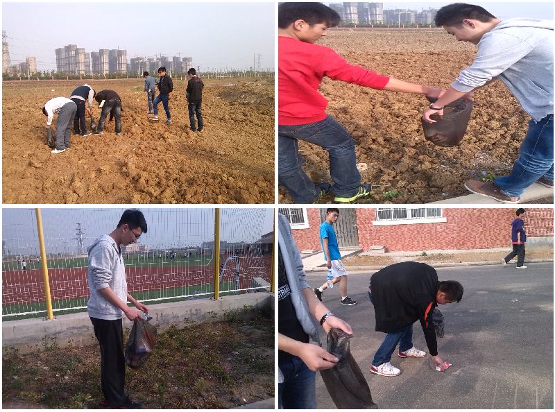 本次活动中,我班同学发扬了不怕累的精神,团结一致、积极向上,将整个操场周围的垃圾都清扫干净。