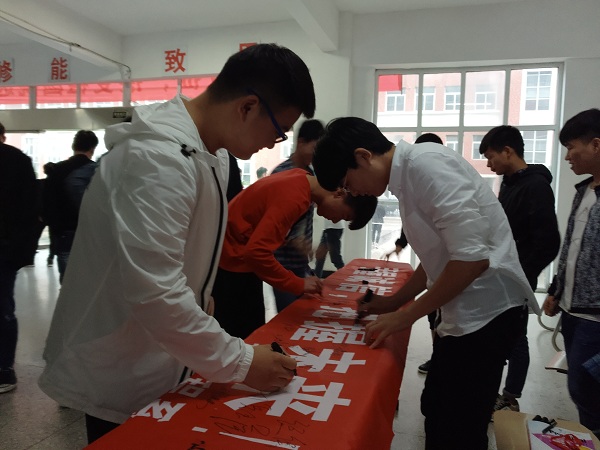 为响应学院“资助诚信主题月”活动,加强对机电系学子的诚信教育,更好的学习社会主义核心价值观精神,由机电系学生会综合部组织的“手握诚信,把握未来”签字仪式于5月25日中午在机电系大厅开展。