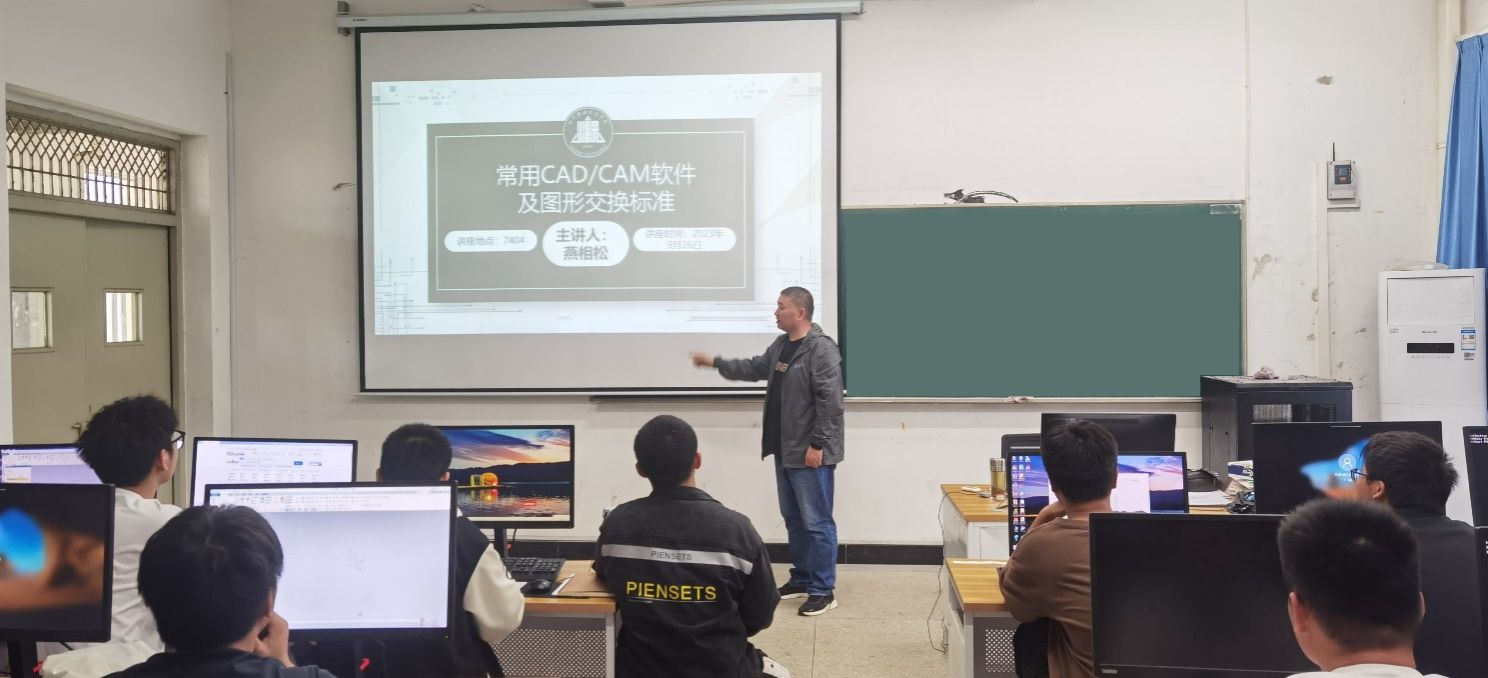 2023年9月26日下午,电气工程学院举办了题为“常用CAD/CAM软件及图形交换标准”学术讲座,地点为7404多媒体教室,主讲人为电气工程学院副院长燕相松,讲座主要分为两个方面的内容:1、图形交换标准; 2、常用CAD/CAM软件比较与分析