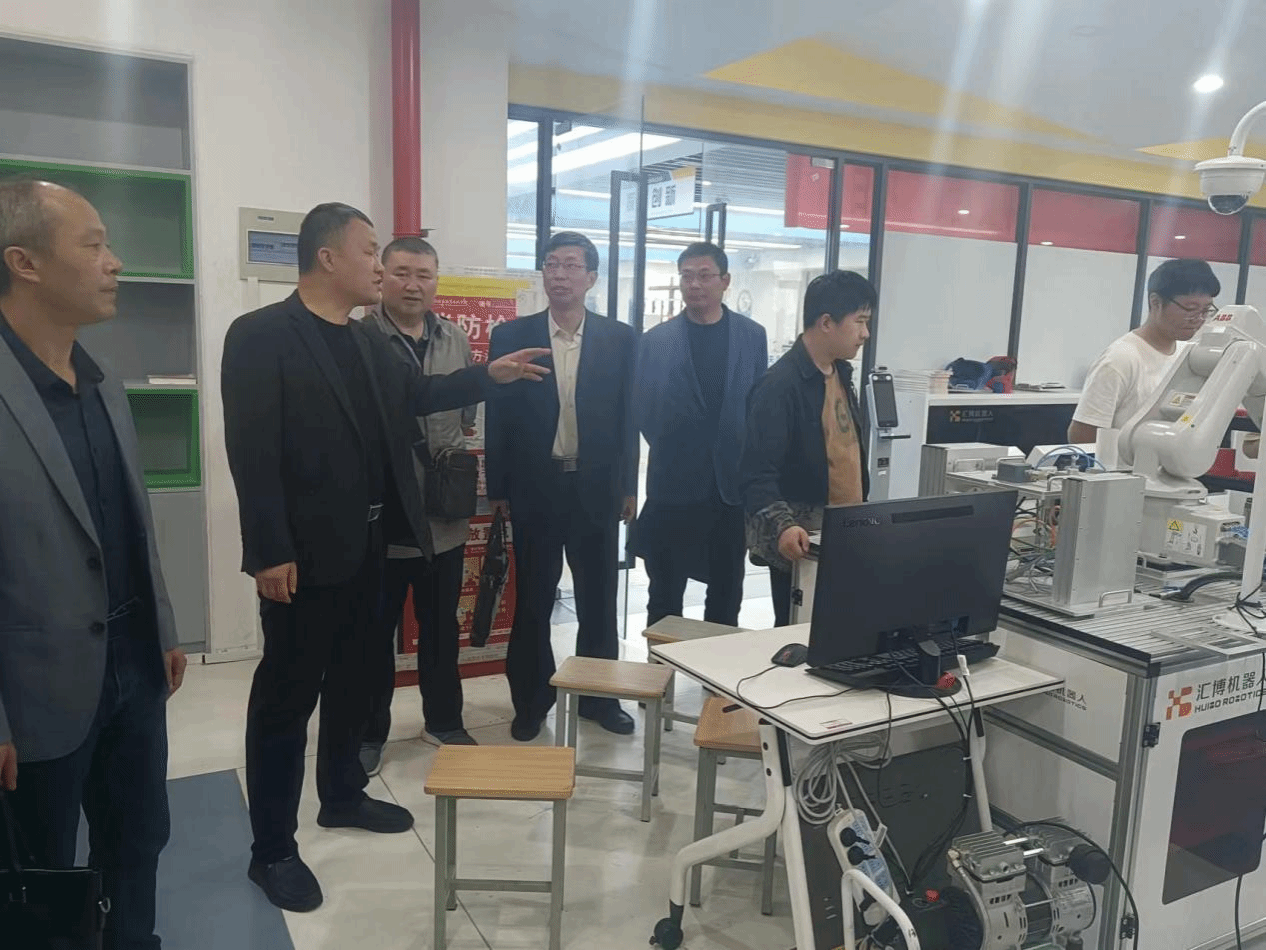 交流会后,曹光华院长陪同调研组一行实地参观了该校实验实训场地,并考察了该校机器人产业学院。