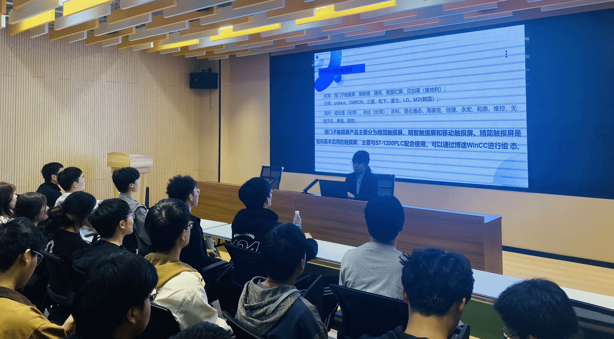 在讲座中,冯巧红副教授深入探讨了西门子触摸屏在工业领域中的广泛应用,她提到西门子触摸屏作为工业自动化的重要组成部分,通过其直观的操作界面,为高效的数据管理和操作控制提供了有力支持。冯巧红老师从西门子触摸屏的应用领域、组态软件入手,简单介绍了目前市场常见的人机界面产品和西门子触摸屏的主要特点,接着详细阐述了基于西门子触摸屏的项目创建和组态方法,最后重点分享了一些触摸屏画面制作过程中的一些实用小技巧,如利用复制、修改、分散对齐等方式来美化控制画面,利用数据块拖拽法快速创建HMI变量等操作方法。