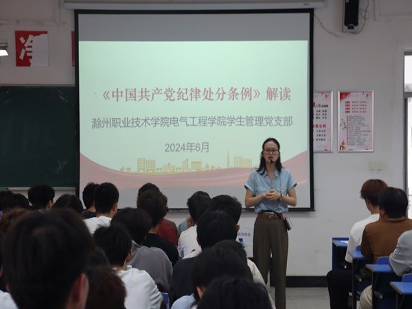 为了帮助学生深入了解党的纪律要求,提升对党的纪律重要性的认知,树立正确的政治观念和纪律意识。电气工程学院学生干部培训班于6月5日下午13:30在北阶202举办了党课培训。此次党课将主题聚焦于《中国共产党纪律处分条例》,其目的在于切实保障党的理论和路线方针政策能够在学院中得以有效贯彻施行。本次培训会由我院学生管理党支部书记夏舒老师主持,第45期入党积极分子、预备党员以及电气工程学院的学生干部均参与了此次培训。