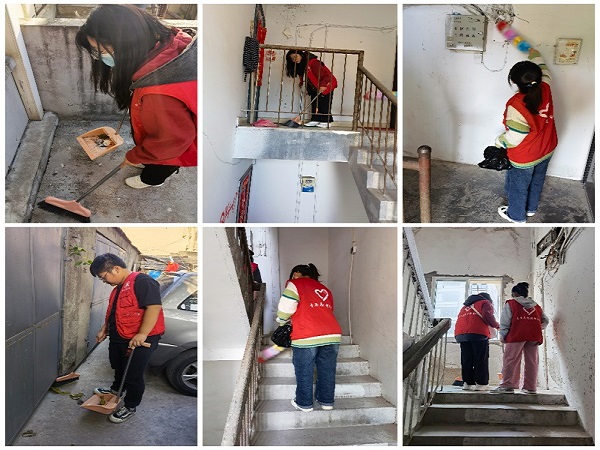 在社区负责人的部署下,我院团学青年分成两组,分别进行清扫社区楼道和公共场所卫生的工作。在清扫期间,每一位同学都秉承着吃苦耐劳的精神以及细心负责的态度来完成这项工作。在楼道清扫中,他们对楼道乱摆乱放的物品进行无死角清扫;在公共卫生区域内,他们始终秉持着“目光所及皆清洁”的理念,用自己的实际行动为社区环境增添了一抹明亮。在这一下午的辛勤劳动中,我院团学青年积极发扬不怕脏、不喊累的精神,兢兢业业,互相配合,他们每一次弯腰的姿态,都形成了社区里一道亮丽的风景线。