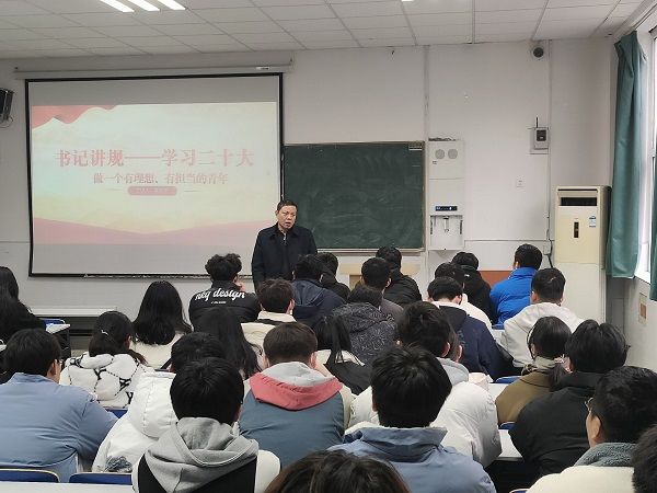 为持续营造浓厚学习宣传氛围,深化理论学习,凝聚思想共识,把我院全体团学青年的思想统一到党的二十大精神上来,我院党总支书记晋太洋结合实际,创新形式,以讲座的形式将学习宣传贯彻党的二十大精神引向深入,在12月9日下午开展“书记讲规”讲座活动,引导我院全体团学青年凝聚共识,凝聚力量,在新时代新征程上,绽放青春绚丽之花。