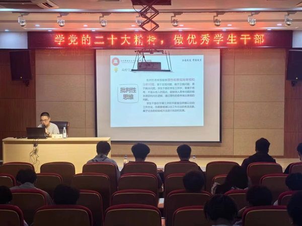 本次培训课程由学生干部角色定位、正确处理关系方式、应具备的思维能力、干部问题隐患以及工作方法五部分组成。辅导员姜帅深入浅出地讲解使学生干部摆正自己在工作中的位置。他强调,完善个人综合素养,将工作重心放到学生中去,始终秉持干部宗旨,才能使电气工程学院这个大家族向阳而生,携手同行。