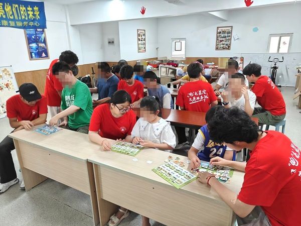 为了增加教学的娱乐性,志愿者们还额外准备了益智小玩具,如看图片拼拼音、趣味拼音点读板等,旨在通过寓教于乐的游戏化方式,激发星星孩子们的学习兴趣。