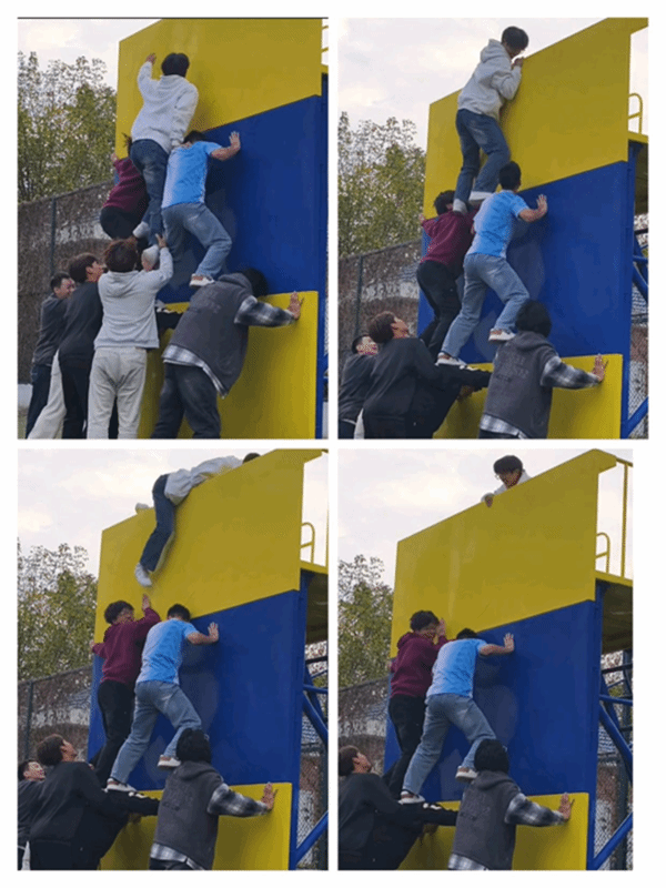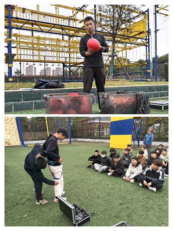 课程伊始,朱秀东老师为同学们详细讲解了课程内容、场地布局、保护措施及动作要领,并亲自示范,确保每位同学都能明确任务,安全参与。同学们全神贯注地聆听,并依次穿戴好防护器材,经老师逐一检查后,满怀信心地投入到活动中。课程中,同学们在使用器材时虽会胆怯,但是没有人选择退出,每个人都完成了本次的课程内容,在一次次挑战中展现出更全新的自己,无不体现了属于年轻人的那股子拼劲闯劲,和年轻的朝气。面对4米高的挑战墙,同学们没有退缩,而是选择团结协作,共同克服难关。在这个过程中,他们学会了如何沟通、如何协作,如何共同面对困难并战胜它。每个人都全力以赴,即使过程中有胆怯和犹豫,也都在团队的鼓励下坚持完成了任务。他们的笑容中洋溢着青春的朝气与拼劲,展现了当代青年的风采。