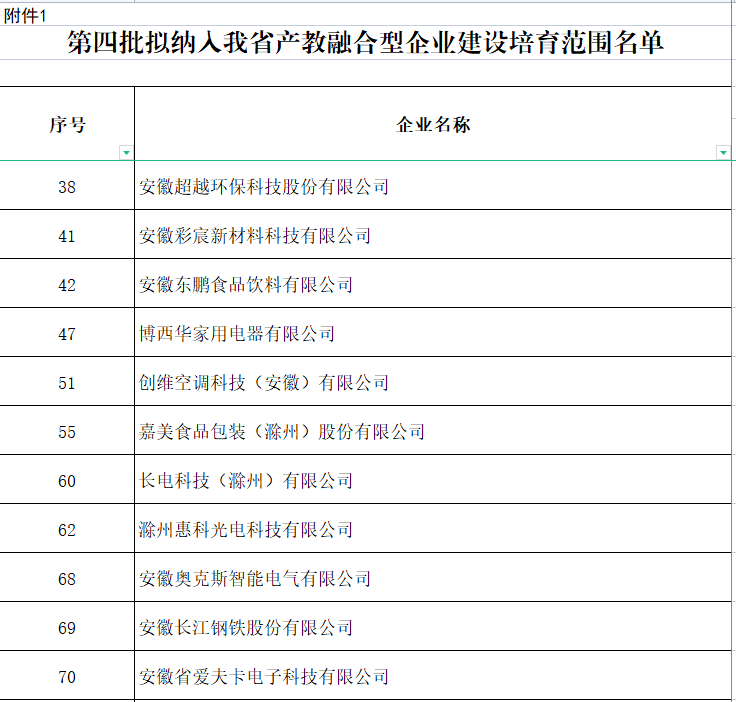 近日,安徽省发展和改革委员会公布安徽省第四批产教融合型企业建设培育范围名单,beat365组织推荐的博西华、惠科光电、长电科技、嘉美食品、创维空调、东鹏食品等六家全部入围。
