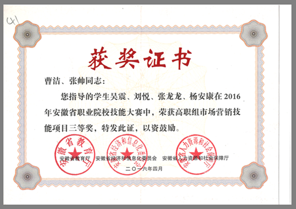 (市场营销技能项目三等奖)