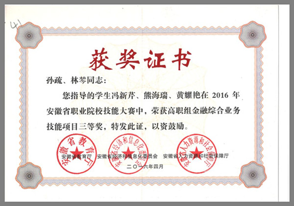 (金融综合业务技能项目三等奖)