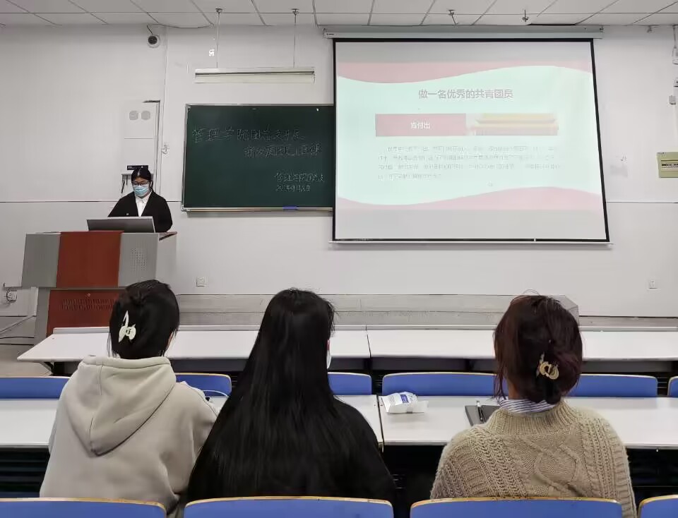 为加强管理学院共青团队伍建设,夯实团员政治理论基础,增强青年团员的进取意识,管理学院团总支于2022年9月18日18:30在1102教室组织新发展团员学习团课。本次活动由组织部副部长陈玉主持。