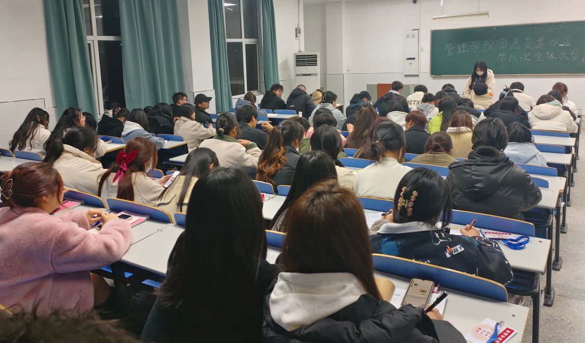 为了进一步加强团总支的组织管理,完善学生组织建设,推动各项工作的顺利进行,团总支于2023年2月19日6:30在1102教室开展团总支第四届第八次全体大会,本次大会由团总支副书记於美娜负责,团总支全体成员参加。