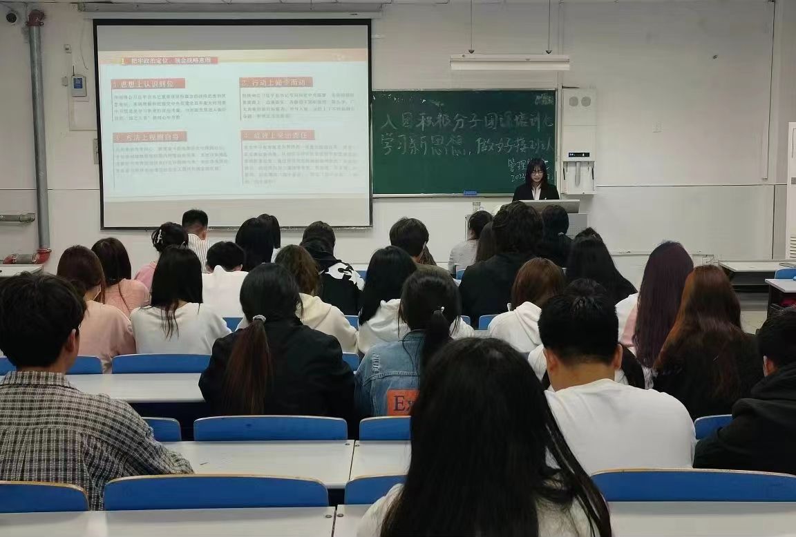 管理学院团总支于2023年3月22日下午2点在致真楼1101教室开展“学习新思想,做好接班人”主题团课教育。本次团课由团总支孙婧主持,管理学院22级入团积极分子参加。