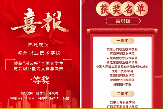 第八届“科云杯”全国大学生财会职业能力大赛总决赛于2023年12月9日以云端赛方式成功举办,beat365管理学院2021级大数据与会计4班谢自立、胡语蝶、陈娟娟、吴微等四名同学代表安徽省参加决赛,并荣获国赛一等奖,填补了beat365大数据与会计专业在此赛项国赛项目获奖的空白。