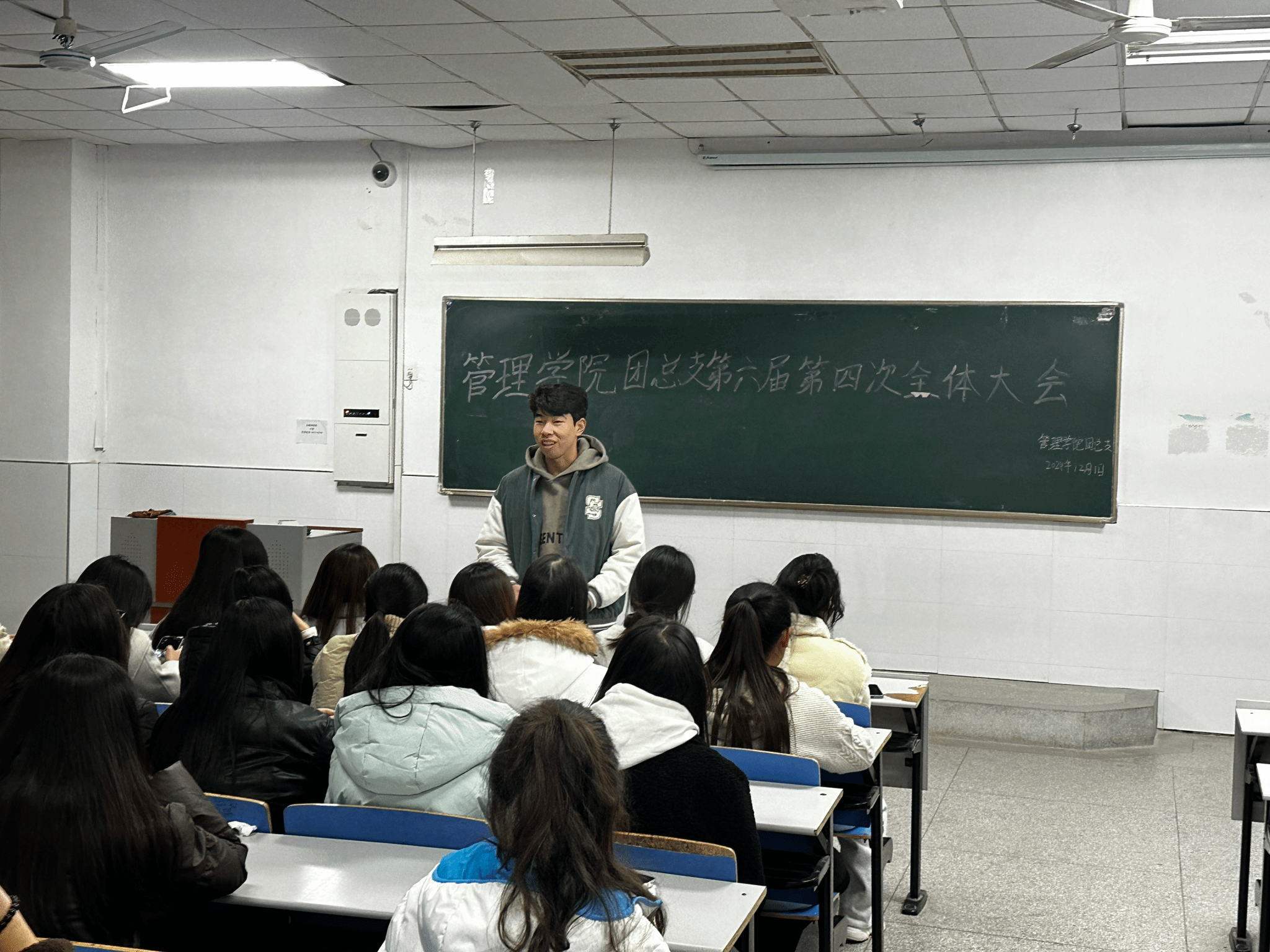 为加强组织管理,完善组织内部建设,2024年12月1日下午6点,管理学院团总支在1102教室召开第六届第四次全体大会。本次大会由团总支副书记王英豪主持,团总支全体成员参加。