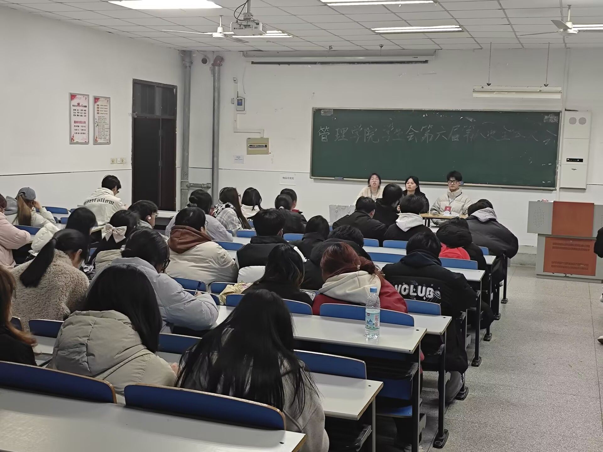 2025年3月4日,管理学院学生会在致真楼1101教室召开第六届第八次学生全体大会。