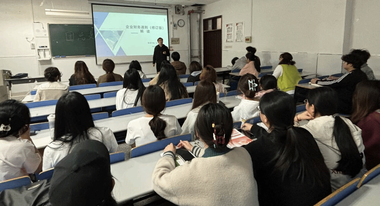 4月28日,管理学院朱永勇副教授于1-101室面向2024级会计学本科和2024级大数据与会计专业共90余名学生做了题为《企业财务通则(修订版)解读》的学术讲座。
