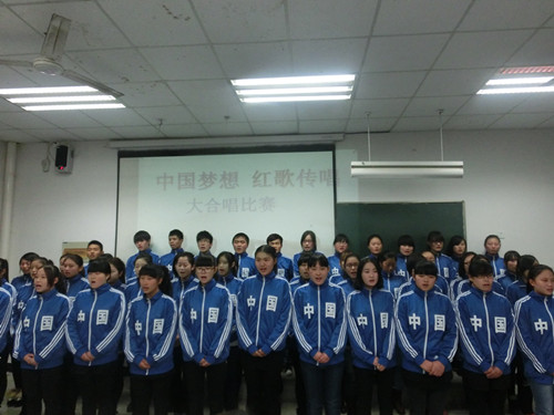 2013年12月5日,在党总支的部署下,经贸系团总支、学生会在致真楼1116教室组织开展了“中国梦想,红歌传承”大合唱比赛。各个班级都积极参加,用自己美妙的歌声来抒发自己的爱国之情。