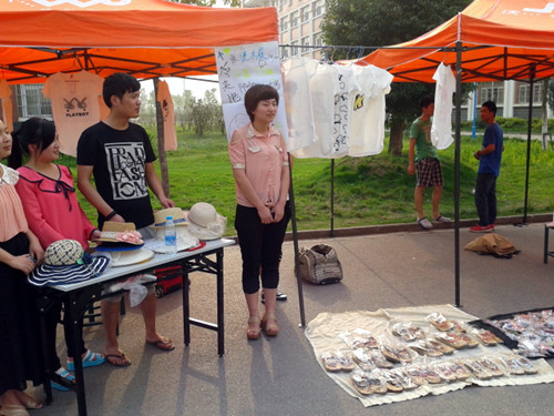 6月15日至16日,经贸系11市场营销班在我院宿舍区进行了《推销实务》校内实训课。本次实训由曹洁、张帅两位老师指导,通过“跳蚤市场”的形式,带领学生们切实体会了商业规划、进货、商品陈列、广告和现场推销等营销工作。