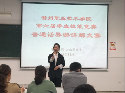为了进一步提高旅游管理专业人才培养质量,提升学生的专业技能,管理学院企业管理系于11月4日下午在1102教室举办“普通话导游讲解大赛”。此次参赛的选手以旅游管理专业在校生为主。评委们围绕仪容仪表和导游词讲解二个大项、六个分项的标准对选手们表现进行评分。