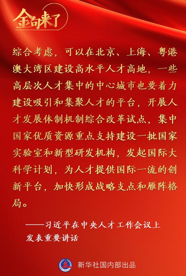 习近平在中央人才工作会议上的重要讲话金句