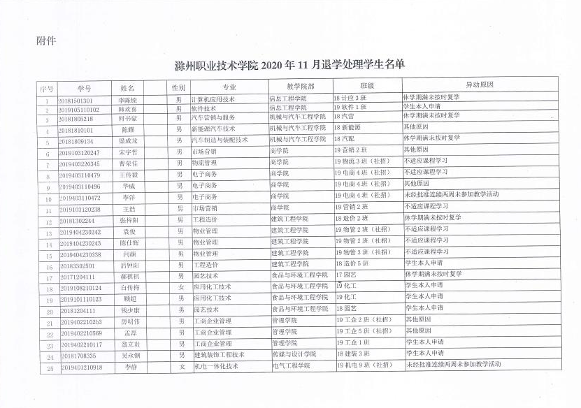 关于对李成锁等25名同学作退学处理的决定 校政教〔2020〕48号