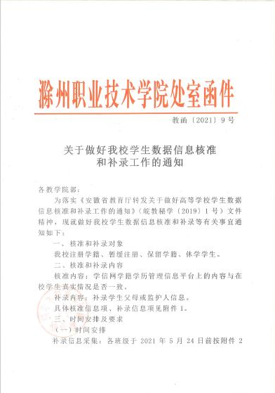 关于做好beat365学生数据信息核准和补录工作的通知 教函〔2021〕9号