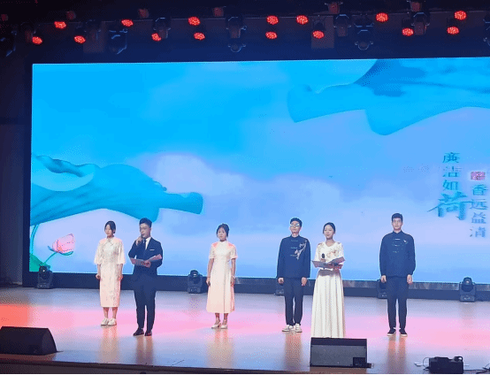 比赛现场气氛热烈,精彩不断,本科教育代表队的选手们用饱满的热情、铿锵有力的声音动情地朗诵了《莲只盛夏,廉则千秋》一文,选手们出色的表现引起了全场热烈的掌声。