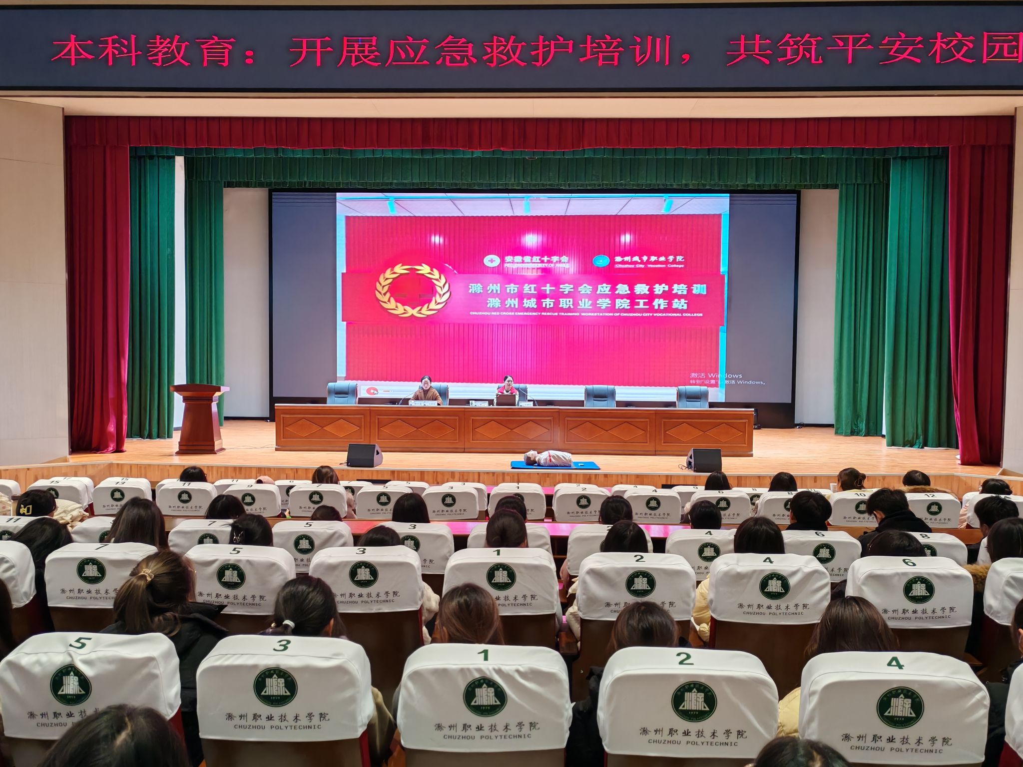 为提升本科师生的应急救护能力,普及急救知识,共同营造安全和谐的校园环境,12月11日下午,beat365在线唯一官网本科教育党支部邀请滁州城市职业学院沐菊和谢晓韵老师,在六号楼报告厅组织开展应急救护培训讲座。讲座由本科教育党支部书记薛天飞主持,本科教育400余名师生参加。