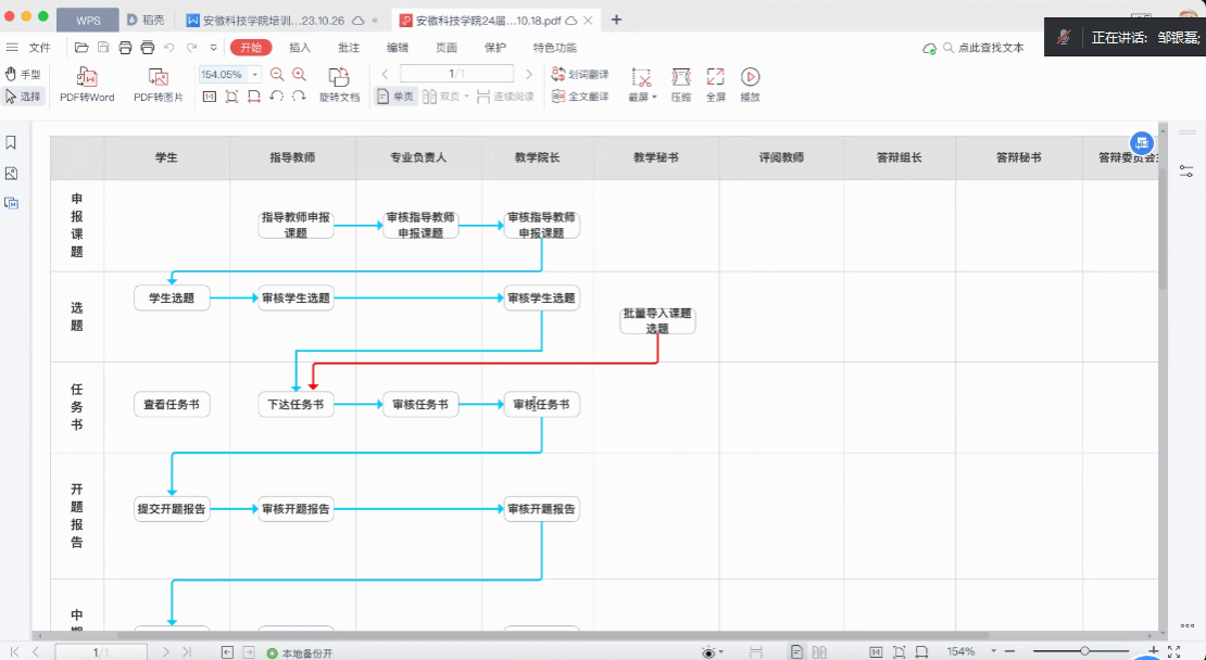 邹银磊对系统的总体流程进行概括总结,围绕本科毕业论文(设计)任务书、文献综述、开题报告、中期检查、论文进展表填写以及论文答辩意见等操作流程做了仔细解读,并就教师们提出的相关问题进行详细解答。