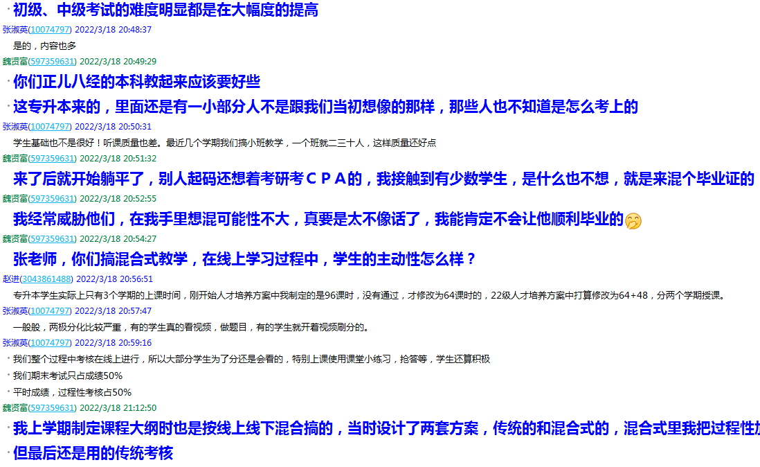 为进一步落实人才培养方案和课程标准,提高beat365联合培养专升本会计专业人才培养质量,规范课程教学实施,管理学院财务会计系于3月18日组织召开了本科《中级财务会计》课程教学研讨会。受疫情影响,本次研讨会通过线上进行,参加人员有beat36521级专升本会计专业《中级财务会计》课程所有授课教师和安徽科技学院张淑英老师。