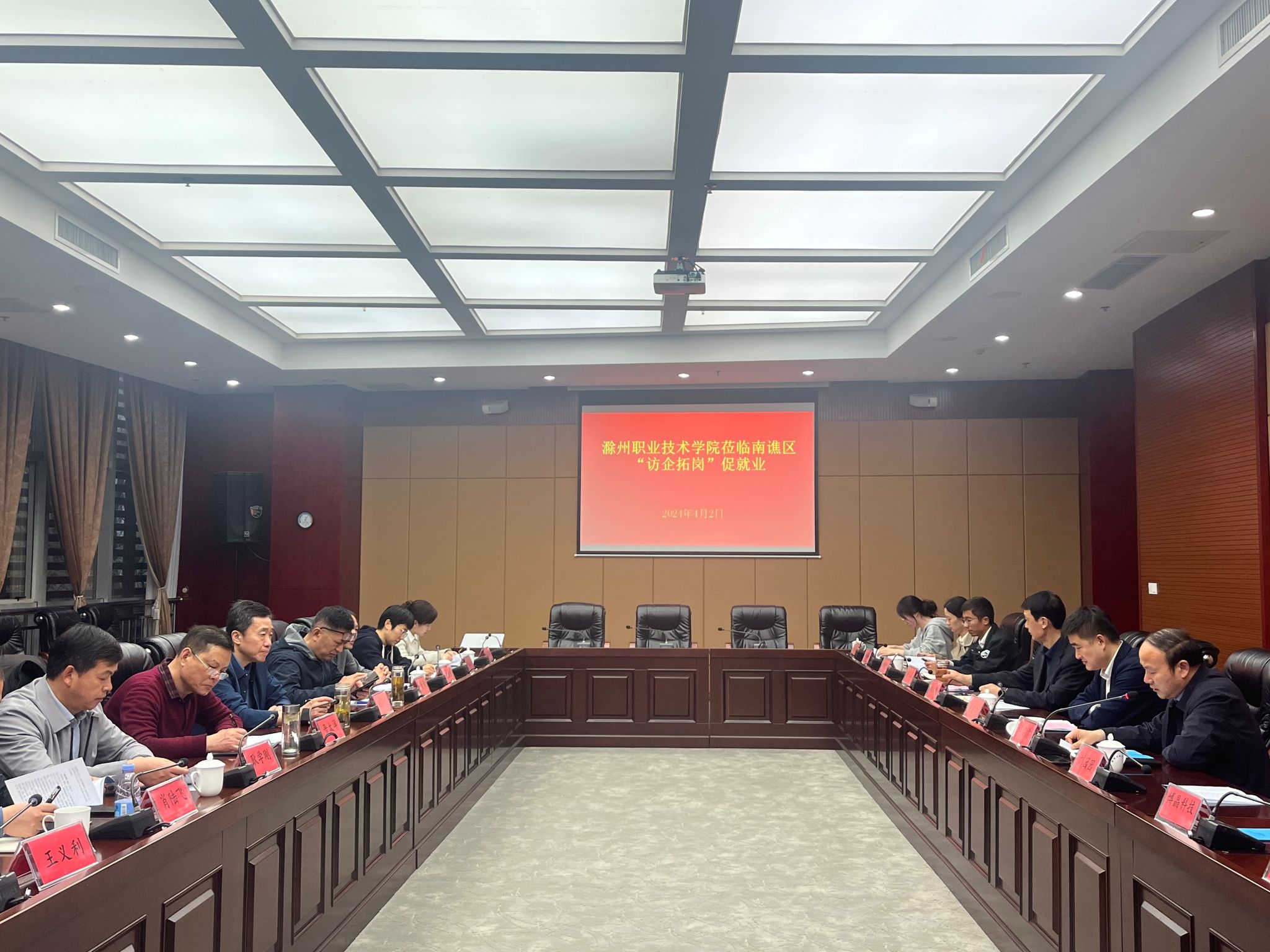 为进一步贯彻党中央、国务院关于高校毕业生就业工作的决策部署,持续推进学校访企拓岗促就业专项行动,搭建毕业生高质量就业和企业精准引才有效平台。4月2日,学校党委副书记杨家庆带队赴南谯区访企拓岗,考察行业发展趋势、产业布局,了解企业用人需求,深化校企合作事项,为毕业生挖掘实习、就业机会。南谯区政府副区长胡晓宇,区人社局党组书记、局长谭启清等陪同走访调研。beat365校长助理、滁州职教集团秘书长穆松,招生就业处、科技处、质量管理中心、电气工程学院、信息工程学院、管理学院、机械与汽车工程学院等相关负责人参与调研。